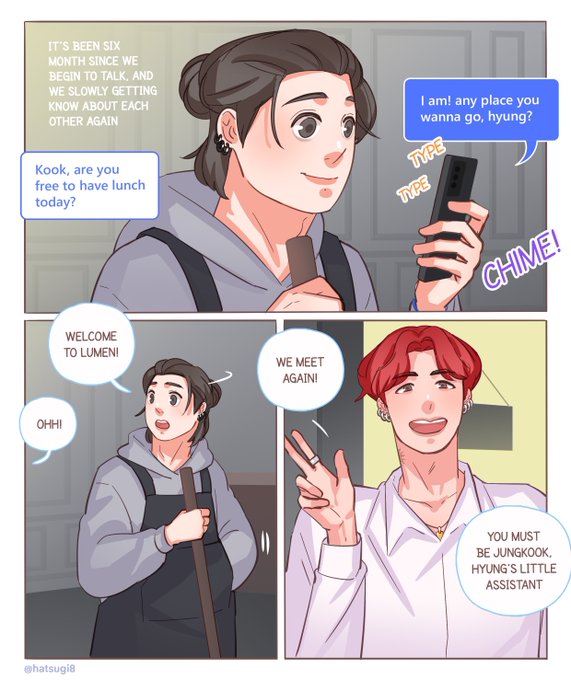 [BFS au - 65] (1/2) Time skip to 2 years after Jungkook's graduation. Kook now works full-time at Yoongi's shop. And the appearance of someone that you guys have been waiting for ^^ #btsfanart #namjin #taekook #yoonminseok #btsau