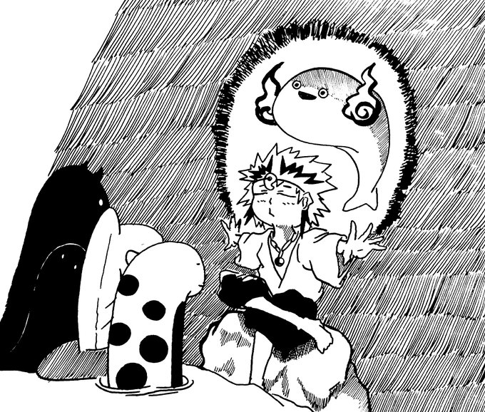 1 7 #ペン画 #イラスト サカバンバスピスに会うチンアナゴ 既に絶滅してるのでシャーマンに呼んでもらいます 23/06/12 20:46