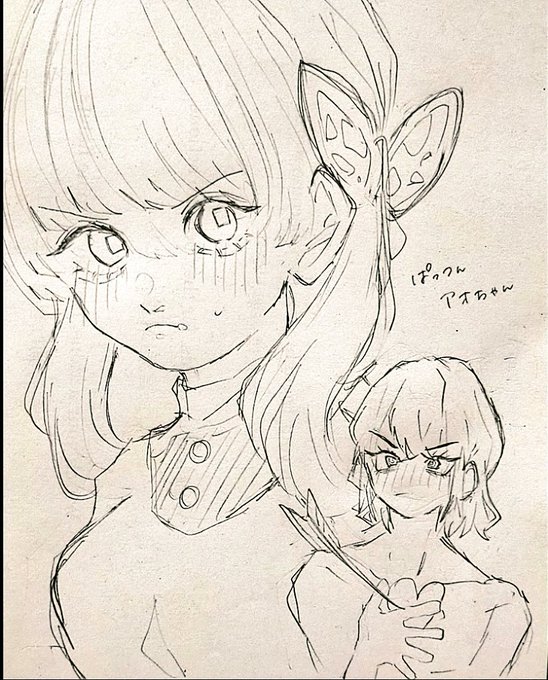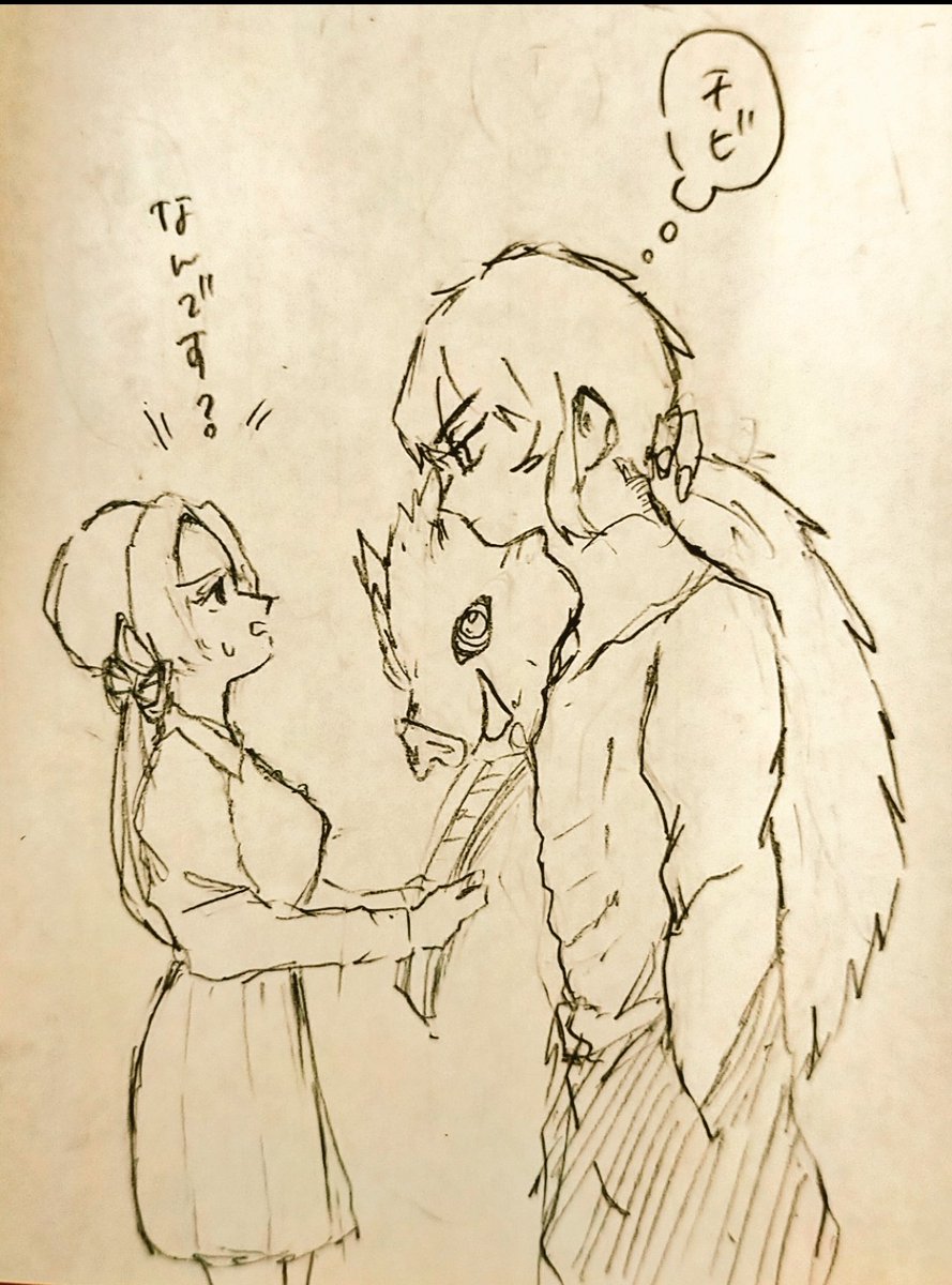 6 59 #鬼滅の刃 #伊アオ #イラスト 遊んでたら不意打ちされたアオイちゃん🐗🦋 23/02/06 13:05