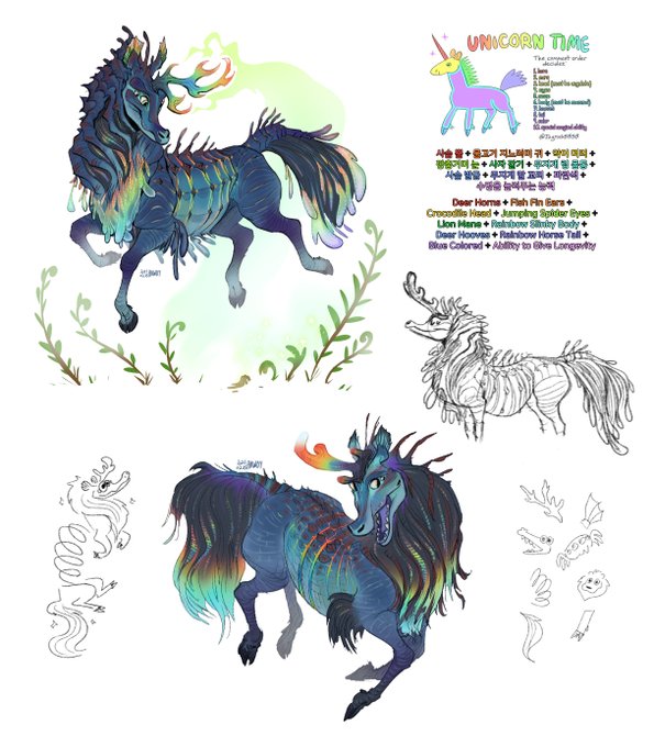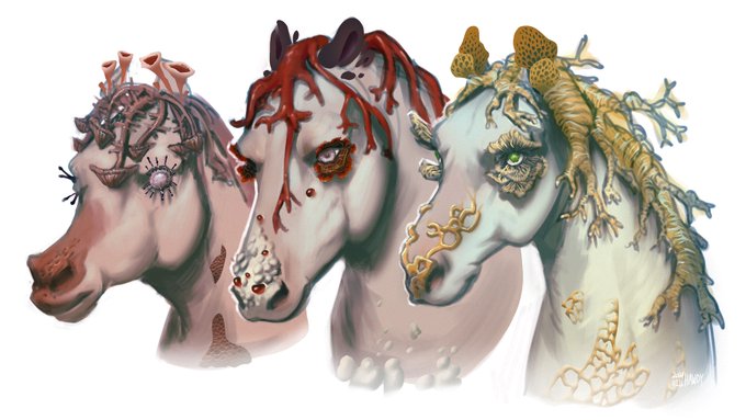 (주의 : 약그로테스크?) (warning : little bit gross?) 버섯 눈 생각하면서 그린 버섯 말들... Fungi Horses 🍄🐴 twitter.com/Hawdy_art/stat…