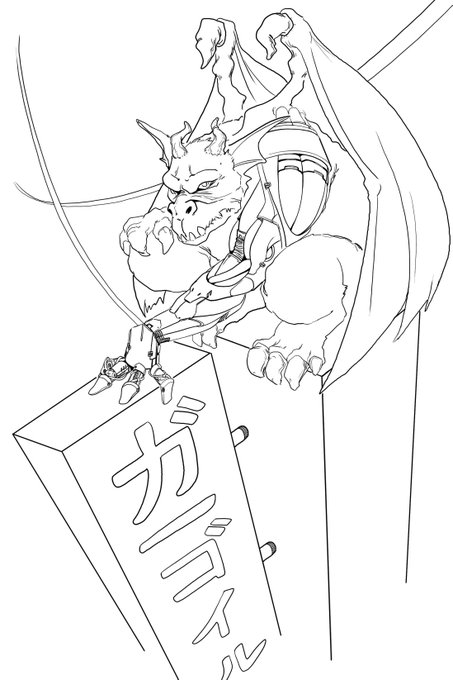 Inktober 2022 - Jour 1, Gargouille. Ma version façon "cyberpunk" du thème officiel ! #inktober2022 #Inktober #Cyberpunk2077 #gargoyle