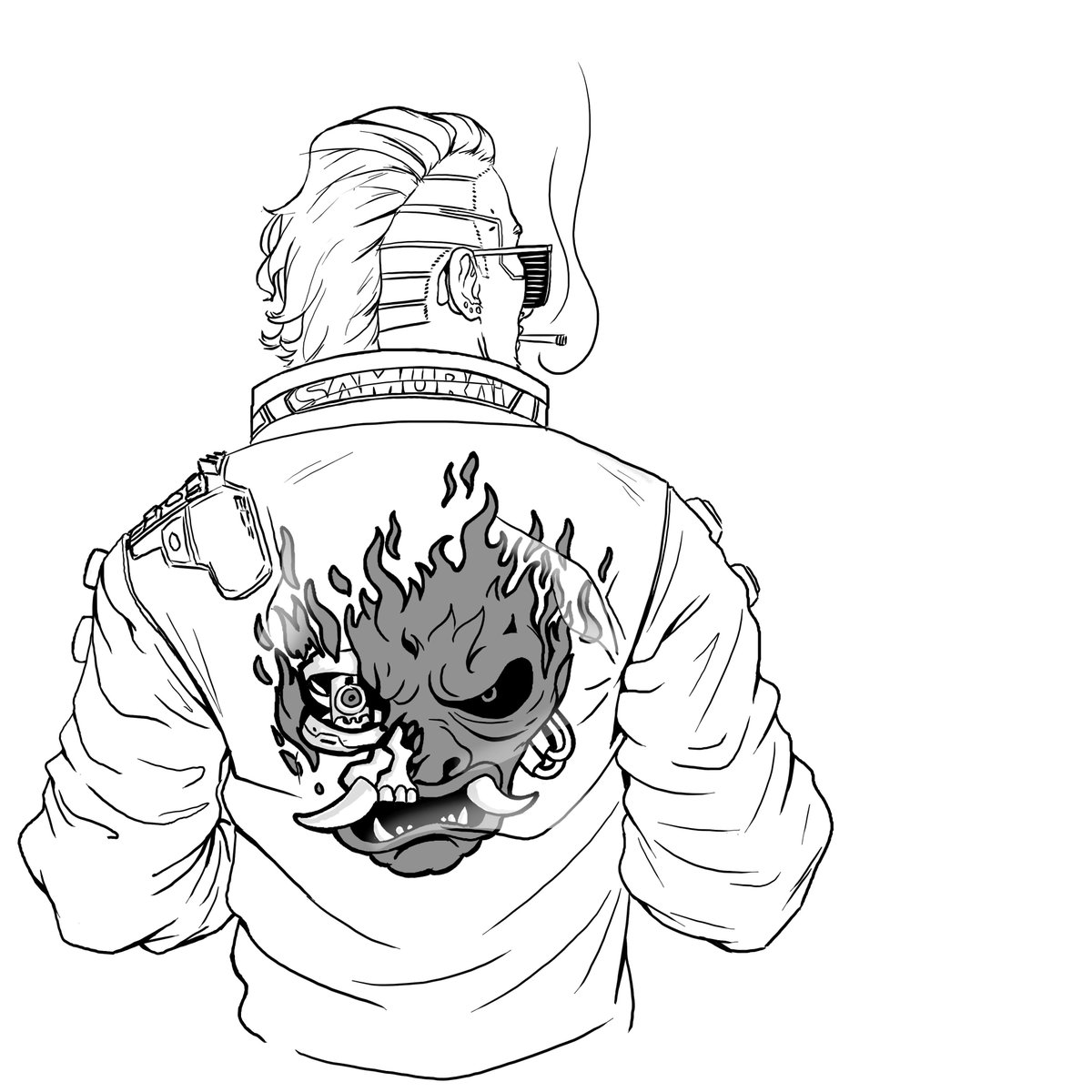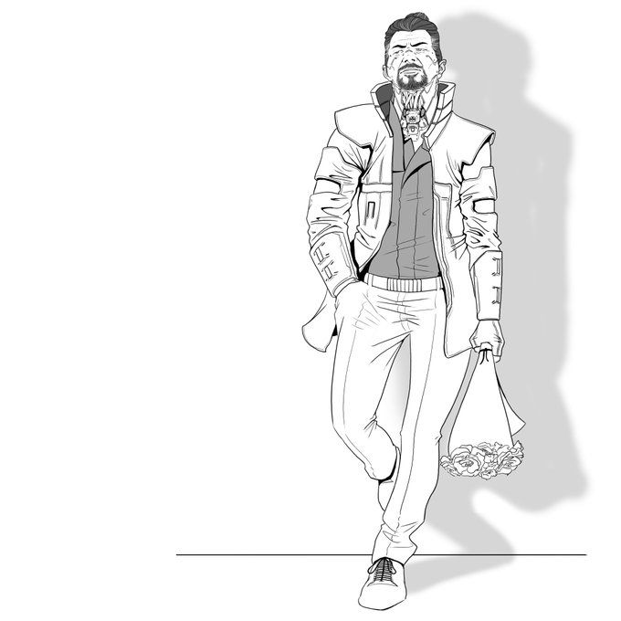 Inktober 2022 - Jour 6 Bouquet. Ma version "cyberpunk" du thème officiel ! (Goro Takemura qui attend V depuis des plombes, parce qu'on ne veut pas avancer la quête principale trop vite ! ^^) #inktober2022 #Inktober #Cyberpunk2077 #Bouquet #Takemura