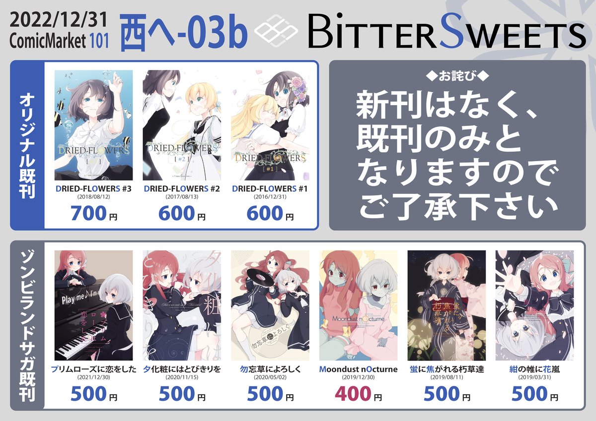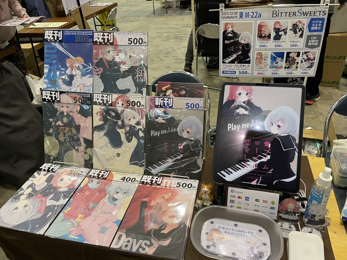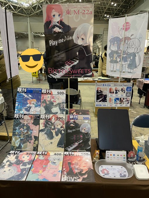 設営完了しました。 「東M-22a BitterSweets」、新刊はゾンビランドサガさく純本「プリムローズに恋をした」、500円です。既刊も色々。 電子決済はSuica等交通系電子マネー利用できます。決済時はすぐに離さず、一息置くといいみたいです。 今日はよろしくお願いいたします。 twitter.com/haya_bs/status…