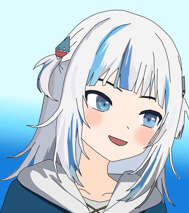 2 versions of a gura's drawing by me, with and without line art, i hope you like it gura tkm #gawrt