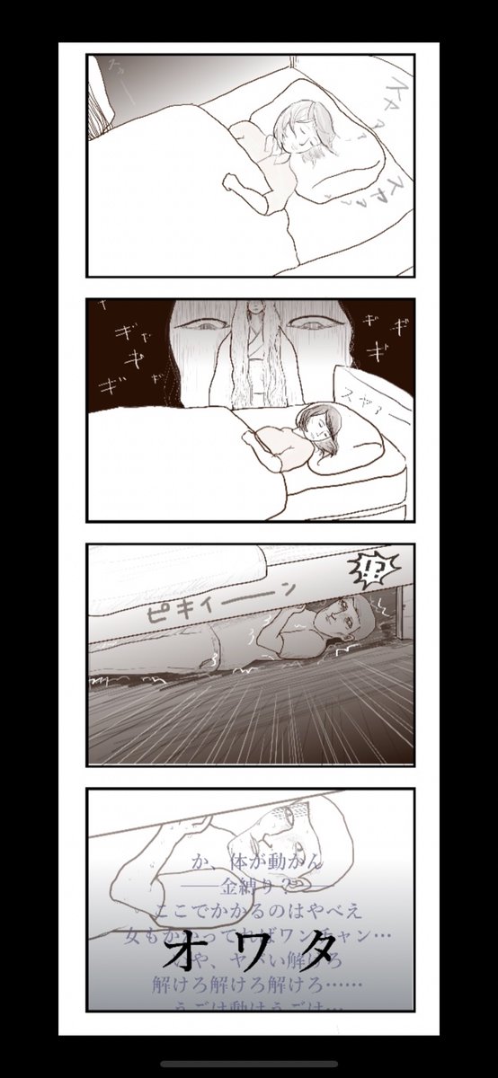 ヨンバト お題「ホラー」 参加作をこちらに変更します よろしくお願いします。 #ヨンバト #4コマ #漫画が読めるハッシュタグ