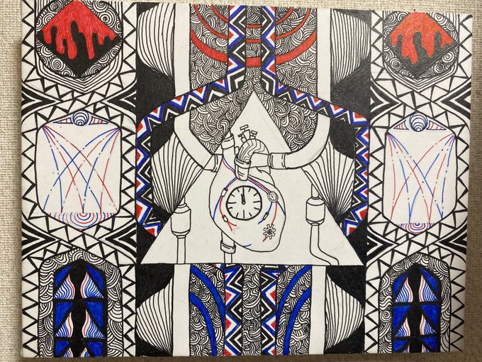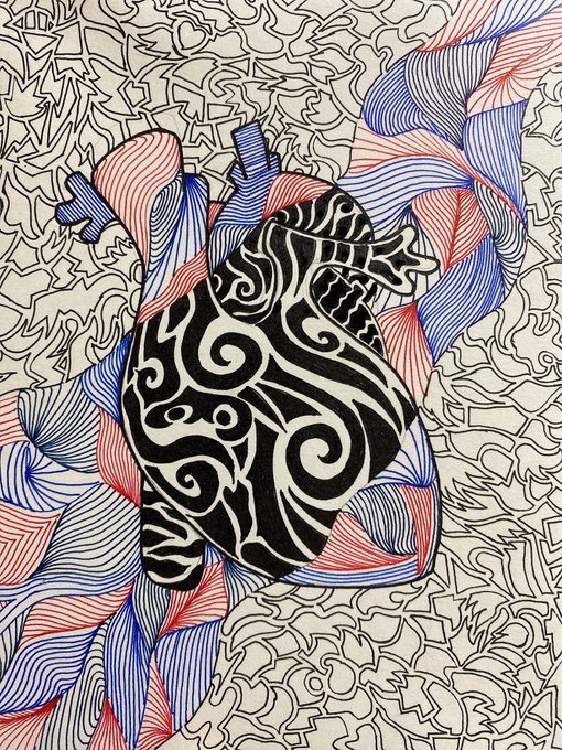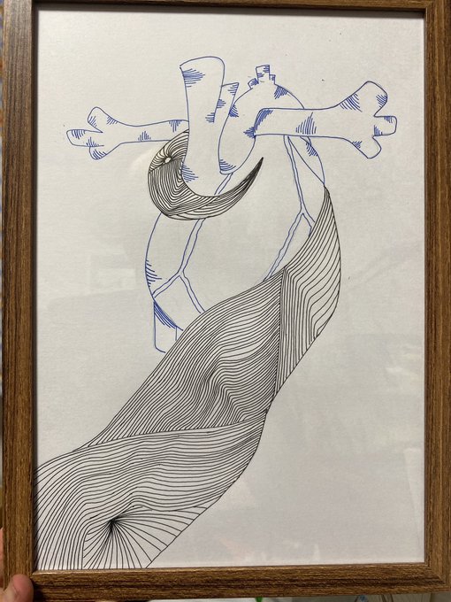 2 14 侵食 #絵描きさんと繋がりたい #絵 #線画 #ペン画 #感情 #うねうね #趣味 #心臓 22/09/02 23:07