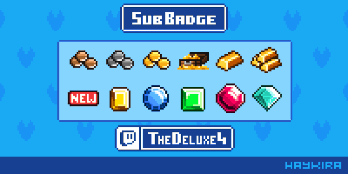 New subscriber badges made for @TheDeluxe4's Twitch channel!✨ #pixelart #commissions #twitchartists