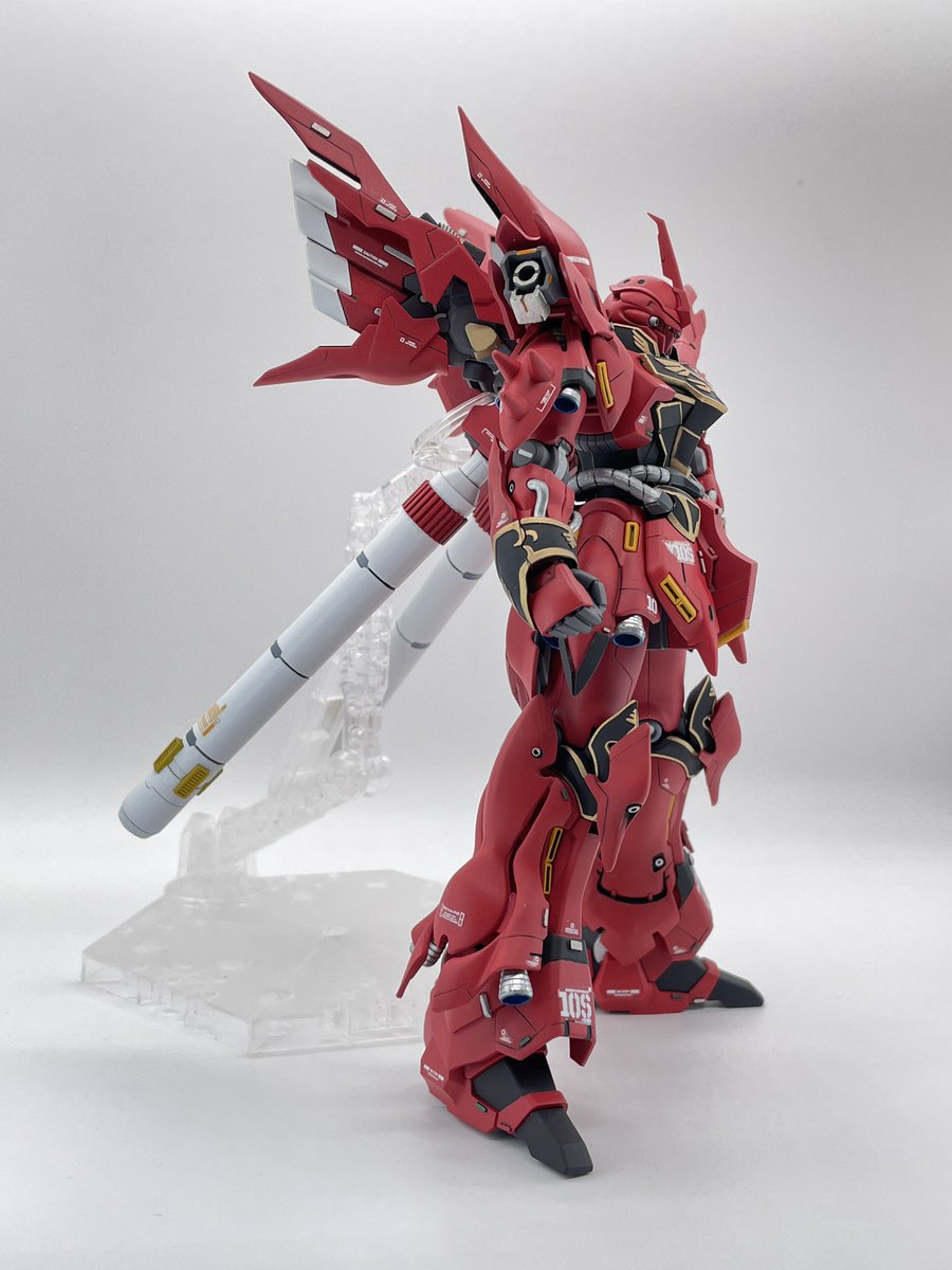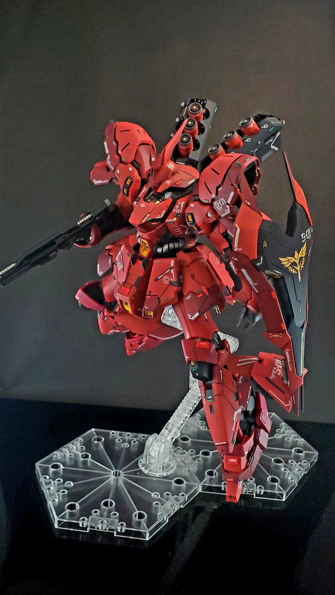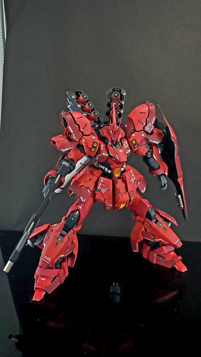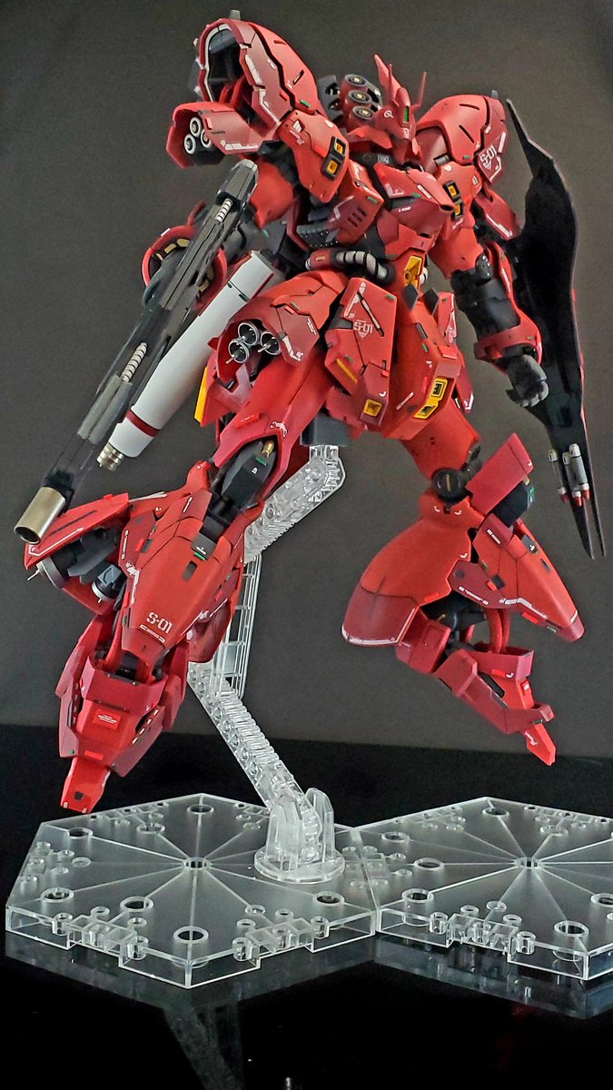 #ガンプラ #ガンプラの画像貼るとRTされると聞いて #RGサザビー とりあえず本体のみ完成です 各所スジボリ、デカール追加。あと足首が寂しかったので動力パイプ追加してます。トップコートはまだ吹いてません