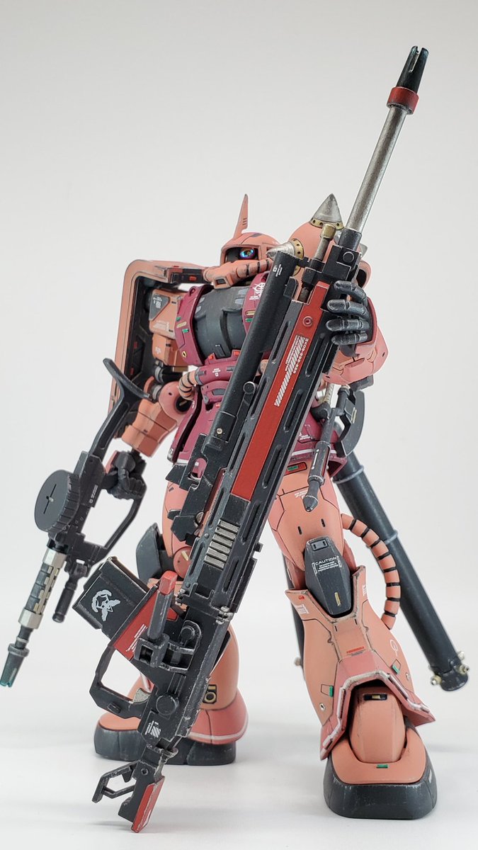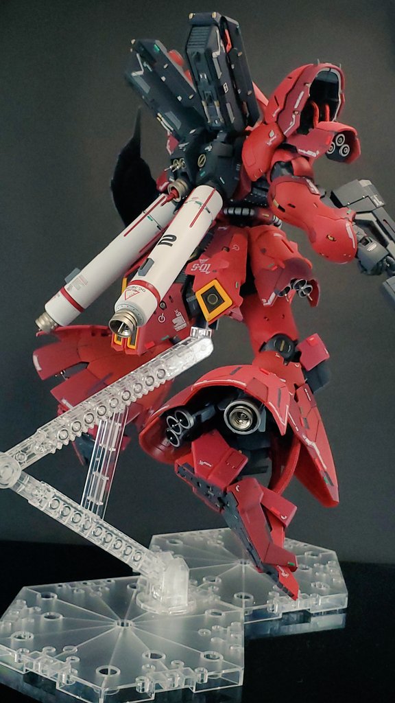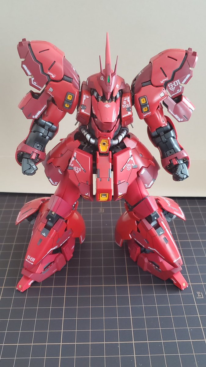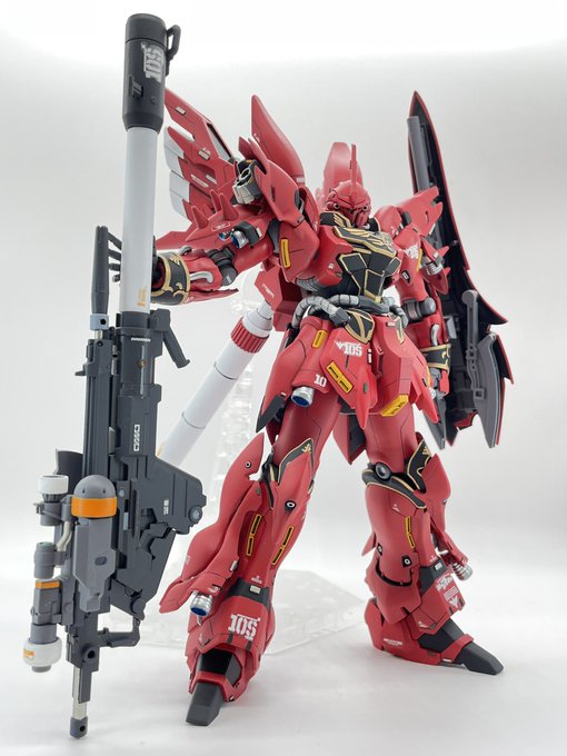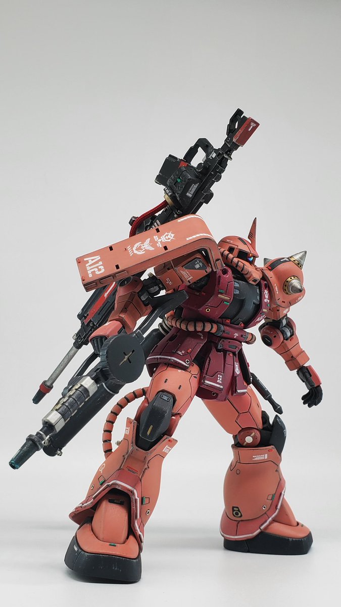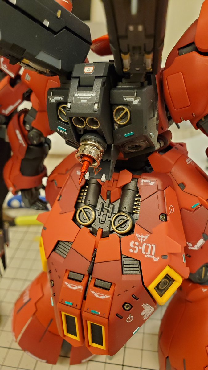 #ガンプラ #ガンプラの画像貼るとRTされると聞いて #RGサザビー とりあえず本体のみ完成です 各所スジボリ、デカール追加。あと足首が寂しかったので動力パイプ追加してます。トップコートはまだ吹いてません