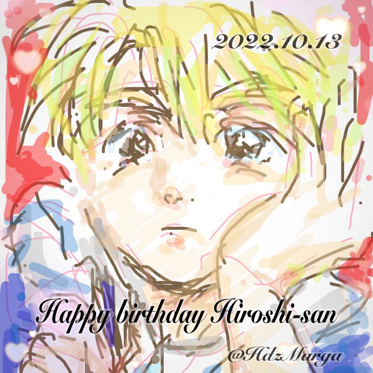 お誕生日に何もお絵かき出来ないー!って心の中で喚いていましたが、体調不良で病院送りになりまして、待合室で概念ヒロシを錬成できました。 (色々すみません) 今年もおめでとうございます! #木戸浩志誕生祭2022 #木戸浩志誕生祭2022