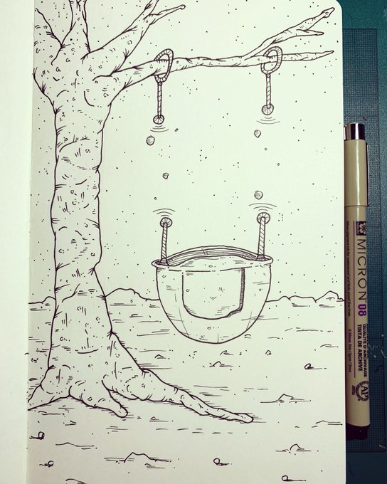 Day 1 - There was an old work chamber that hadn’t worked for years, so long that it had become part of the earth. Each day a group of workers formed a “ RING “ and protected the unit until dark had set in. No knows why...#inktober #inktober2019 #pigmamicron #sakuraofamerica