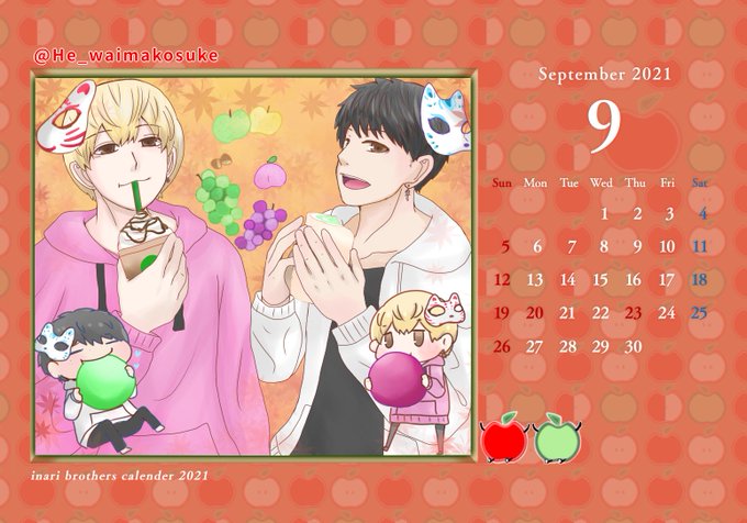 #稲荷兄弟描いてみた カレンダー企画のやーつ 素敵なりんご柄🍎はあささん🦔から