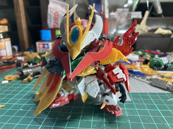 #今月作ったプラモ晒そうぜ テルティウムとゼルトザームモチーフのオリジナルSD。 配色に不安がありましたが、組み上げたらなんとかなってて良かったです← 次のビルド系オリジナルはダイバーズの機体を予定。