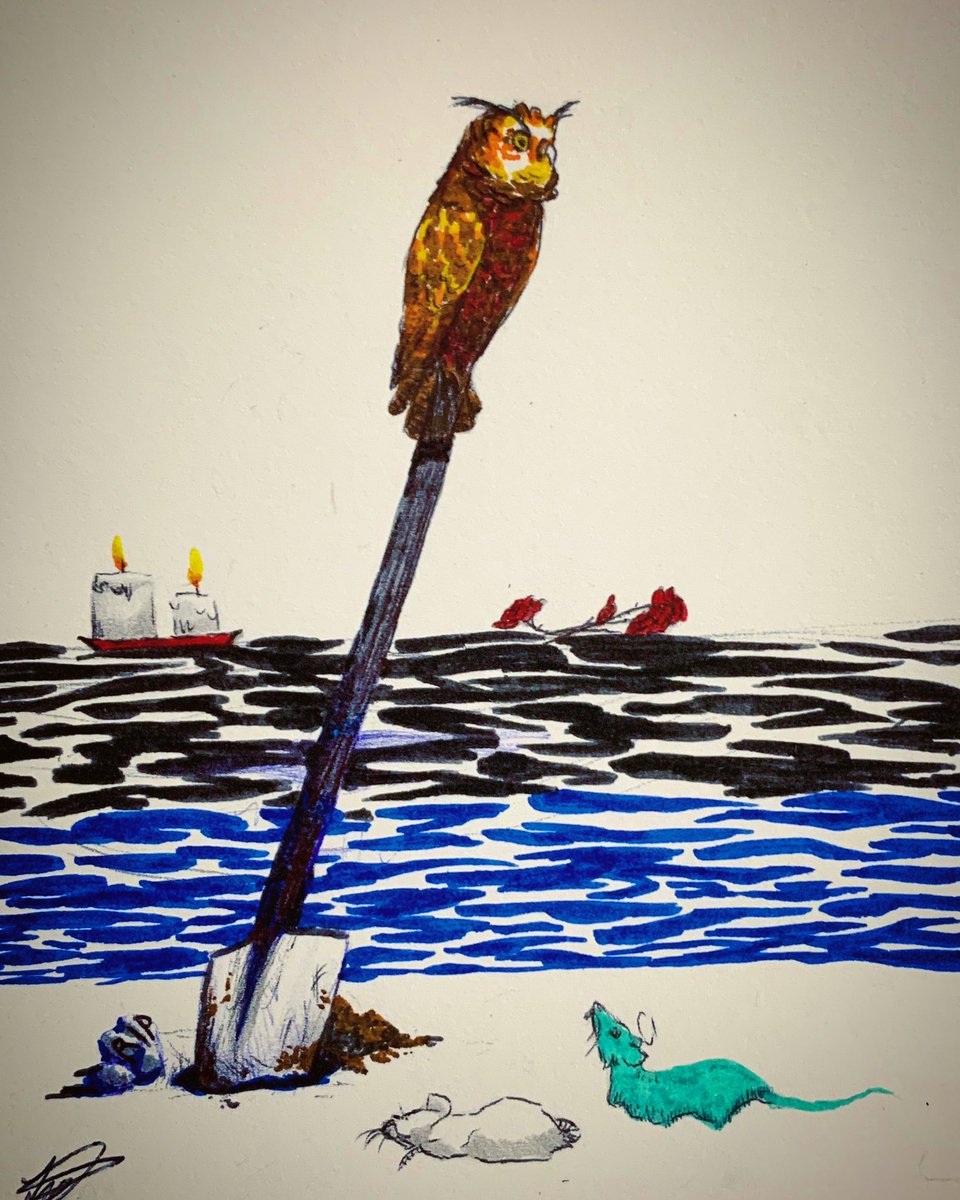 @inktober prompt: dig. Owl digs a grave for her lost friend. #art #illustration #Halloween2020 #inktober2020 #drawing