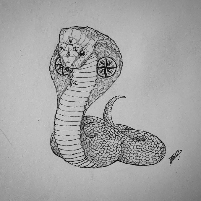 Compassssss — Inktober day 16 . . . . . . #inktober #inktober2021 #drawing #sketches #artwork #ArtistOnTwitter #tuesdayvibe #ink #illustration #traditionalart #snake #australia
