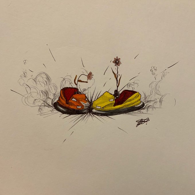 Collide — Inktober day 17, slowly catching up again…bump . . . . . #Inktober #inktober2021 #drawing #sketches #illustration #art #Doodles #ArtistOnTwitter #tuesdayvibe #traditionalart