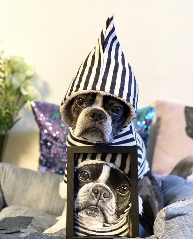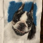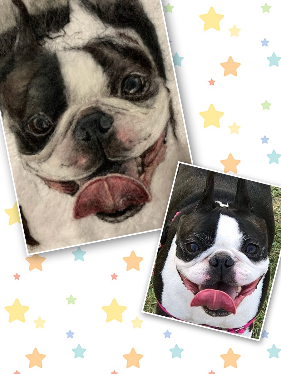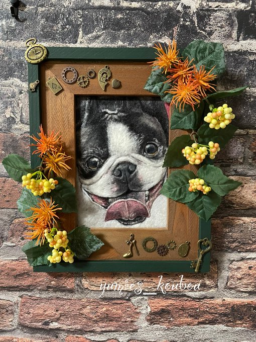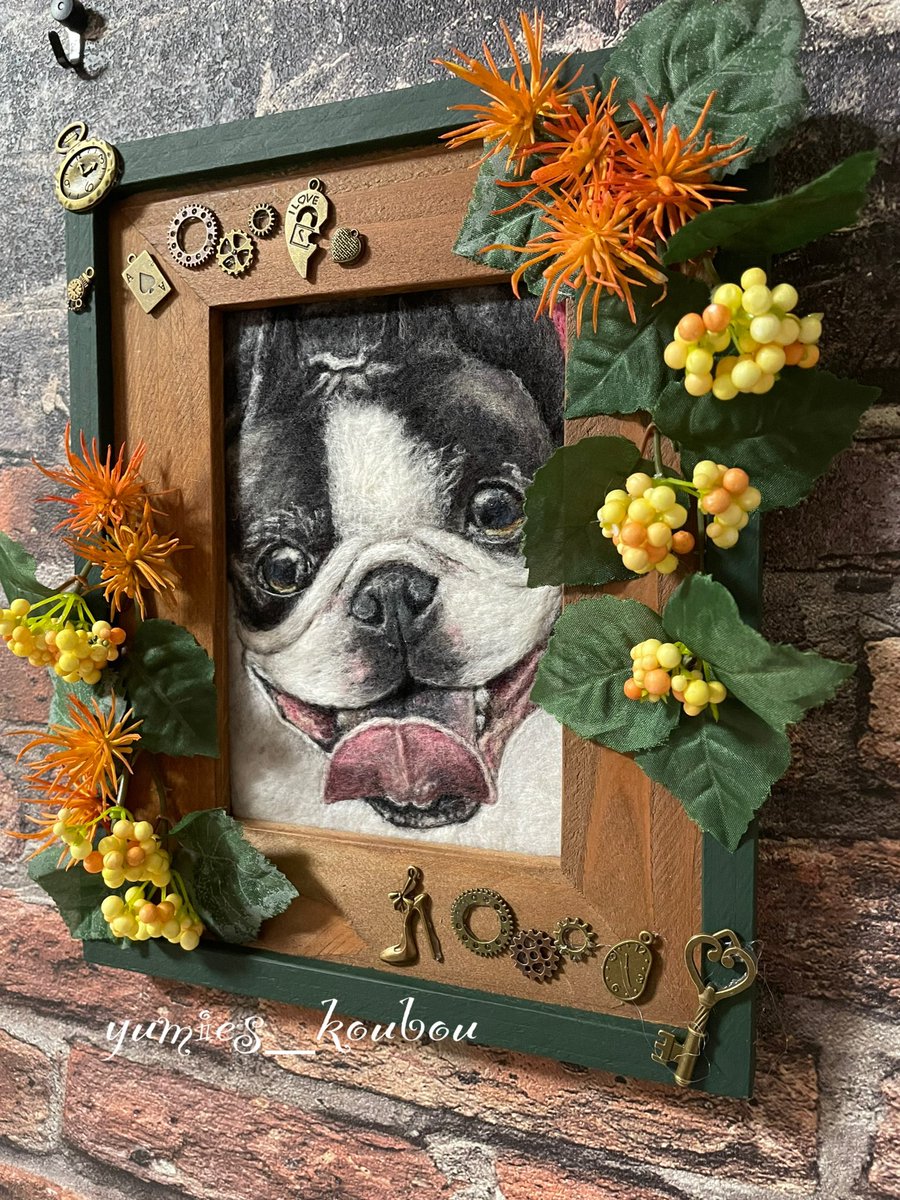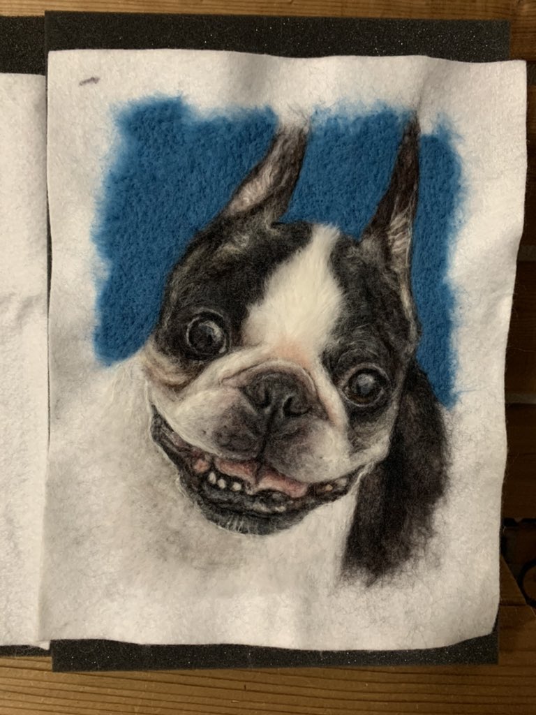 #羊毛ペインティング ボストンテリアのハンナちゃん完成です。 何百回も目が合ってメロメロになりながら制作しました💕 #羊毛刺繍 #羊毛フェルト #woolpainting #needlepainting #羊毛絵画 #動物絵 #ボストンテリア #ハンドメイド #handmade