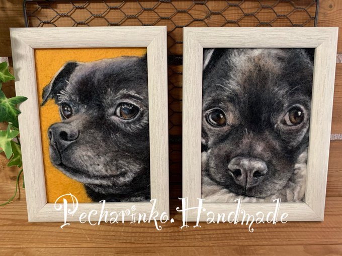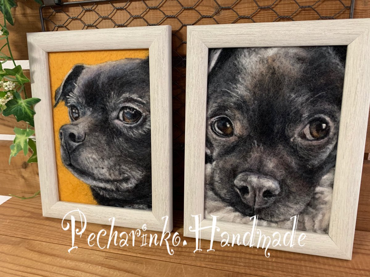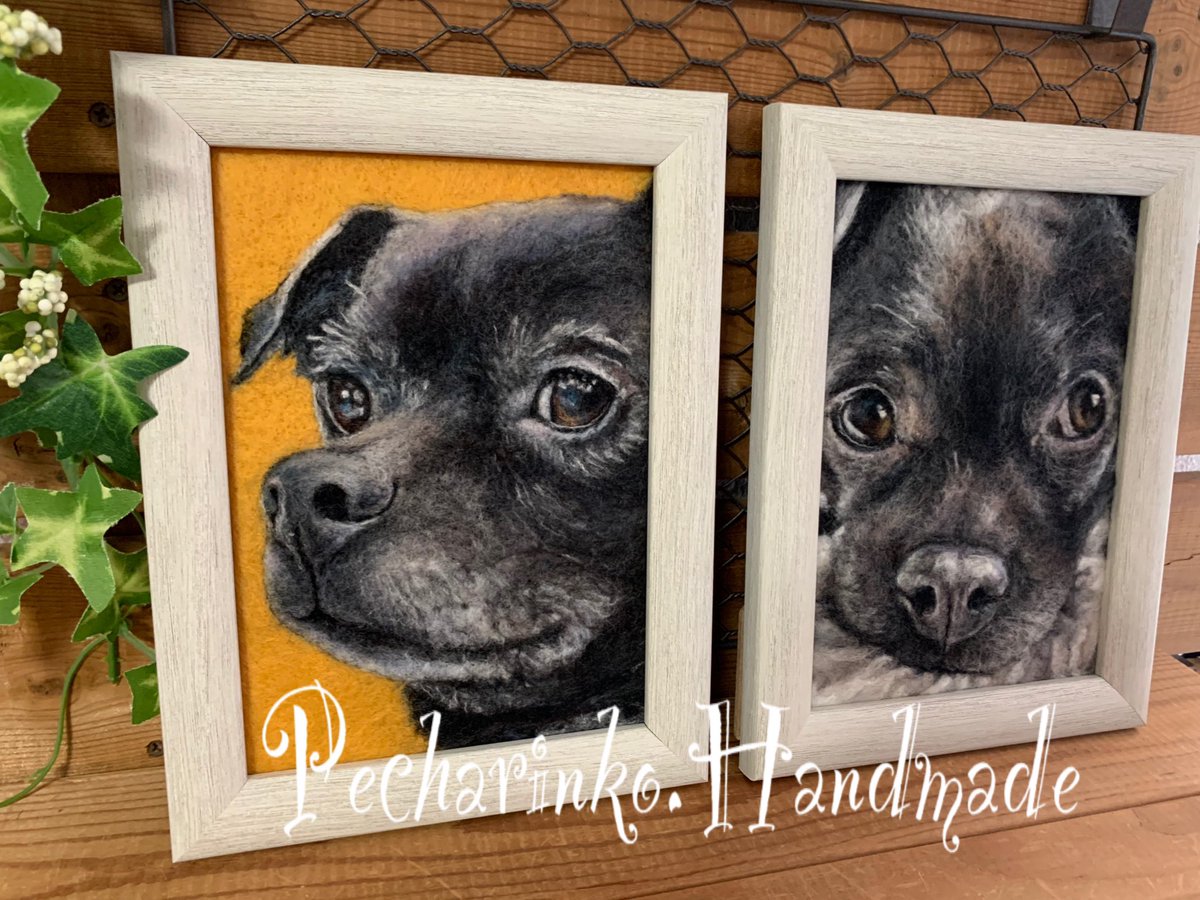 Wクラくんの2ショット💕どちらかがお家に帰ります😊 #羊毛ペインティング #羊毛刺繍 #羊毛絵画 #羊毛フェルト #woolpainting #woolart #feltart #needlepainting #needleart #dogart #ハンドメイド #handmade #平面