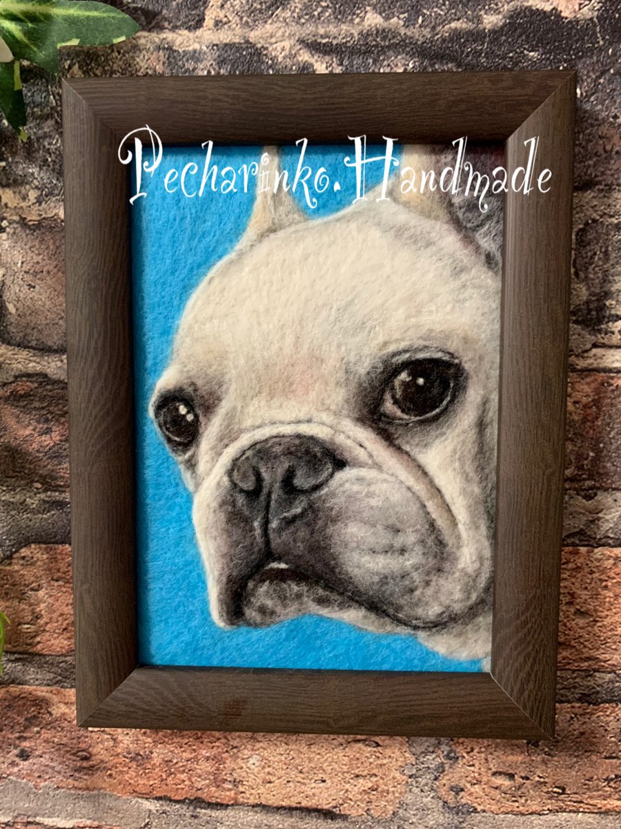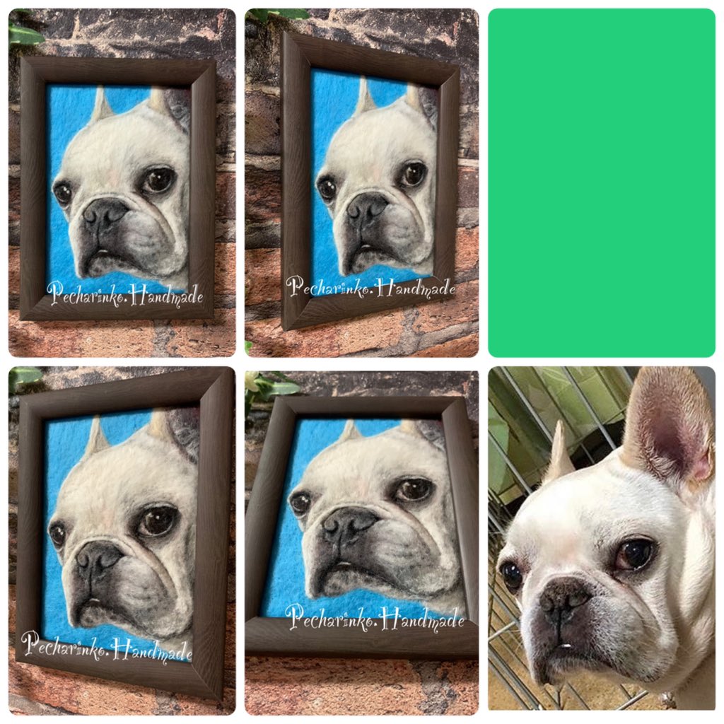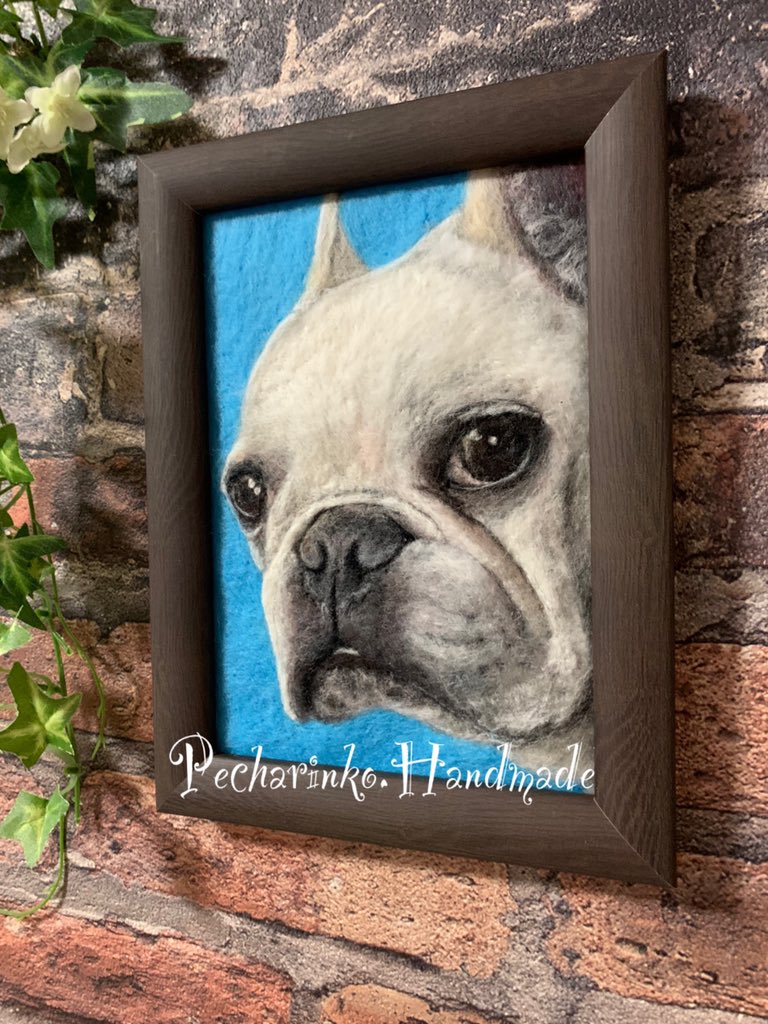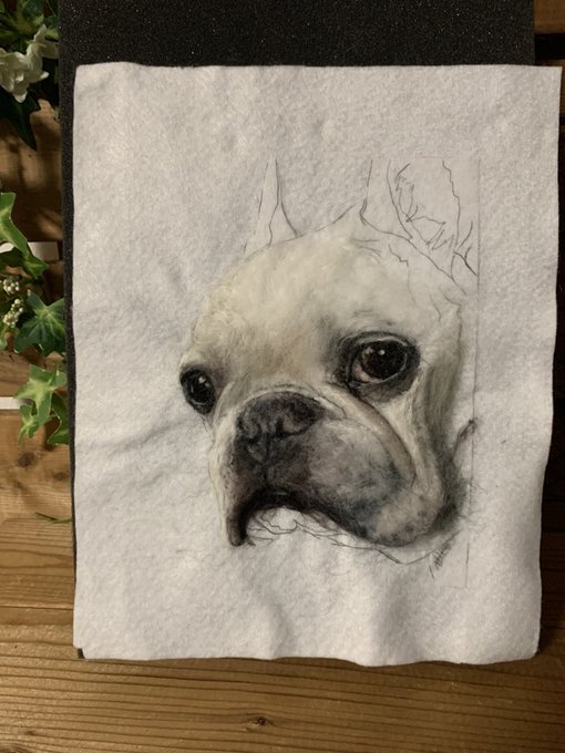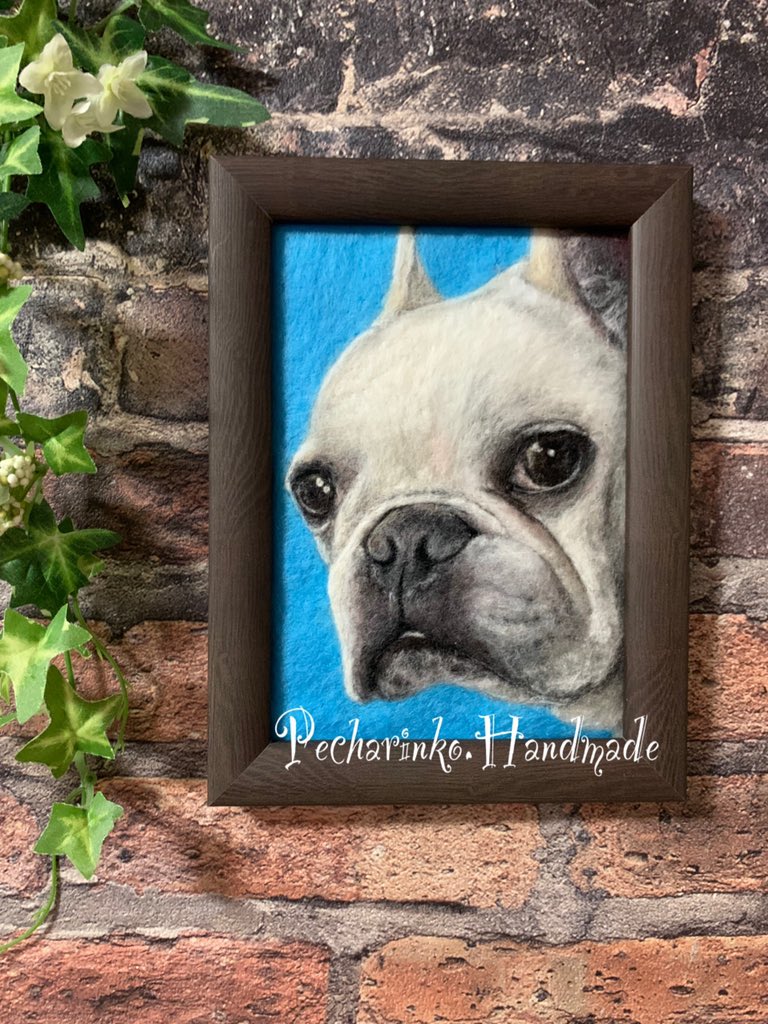 #羊毛ペインティング 完成しました🎉 バックの色は、初めての首輪の色だそうです😊 #羊毛刺繍 #羊毛絵画 #羊毛絵 #羊毛フェルト #woolart #feltart #needleart #フレンチブルドッグ #メモリアル #お空組