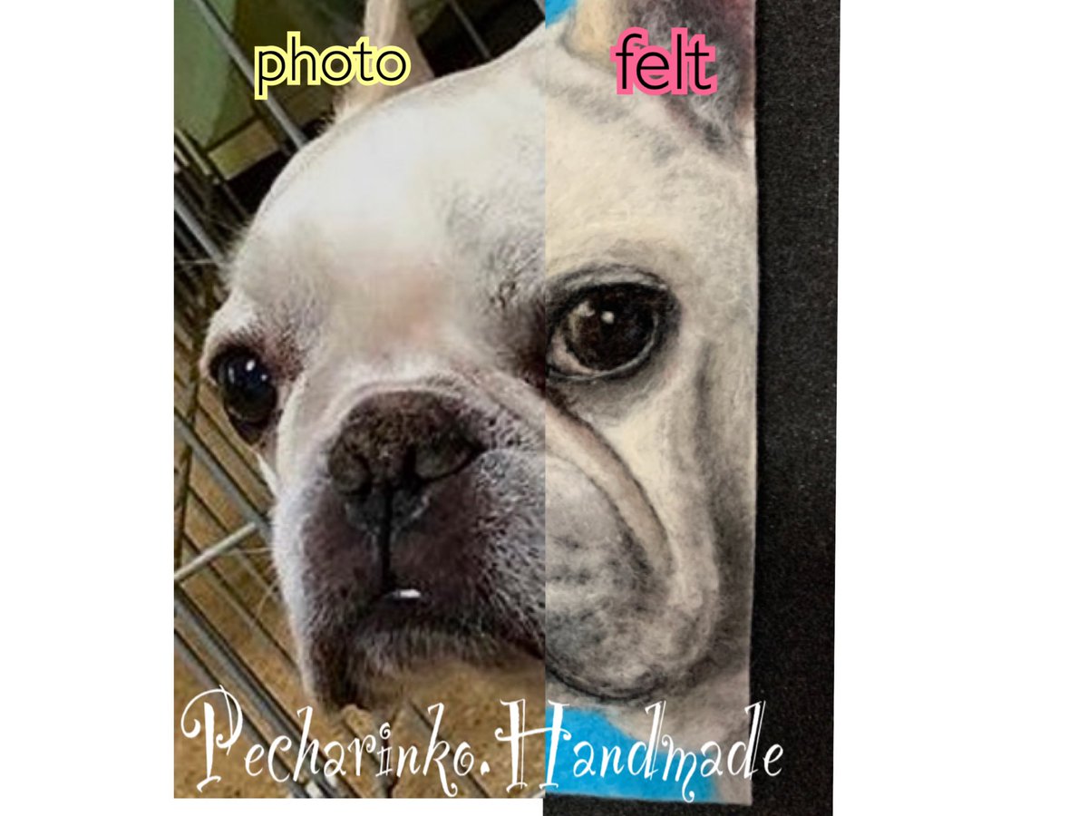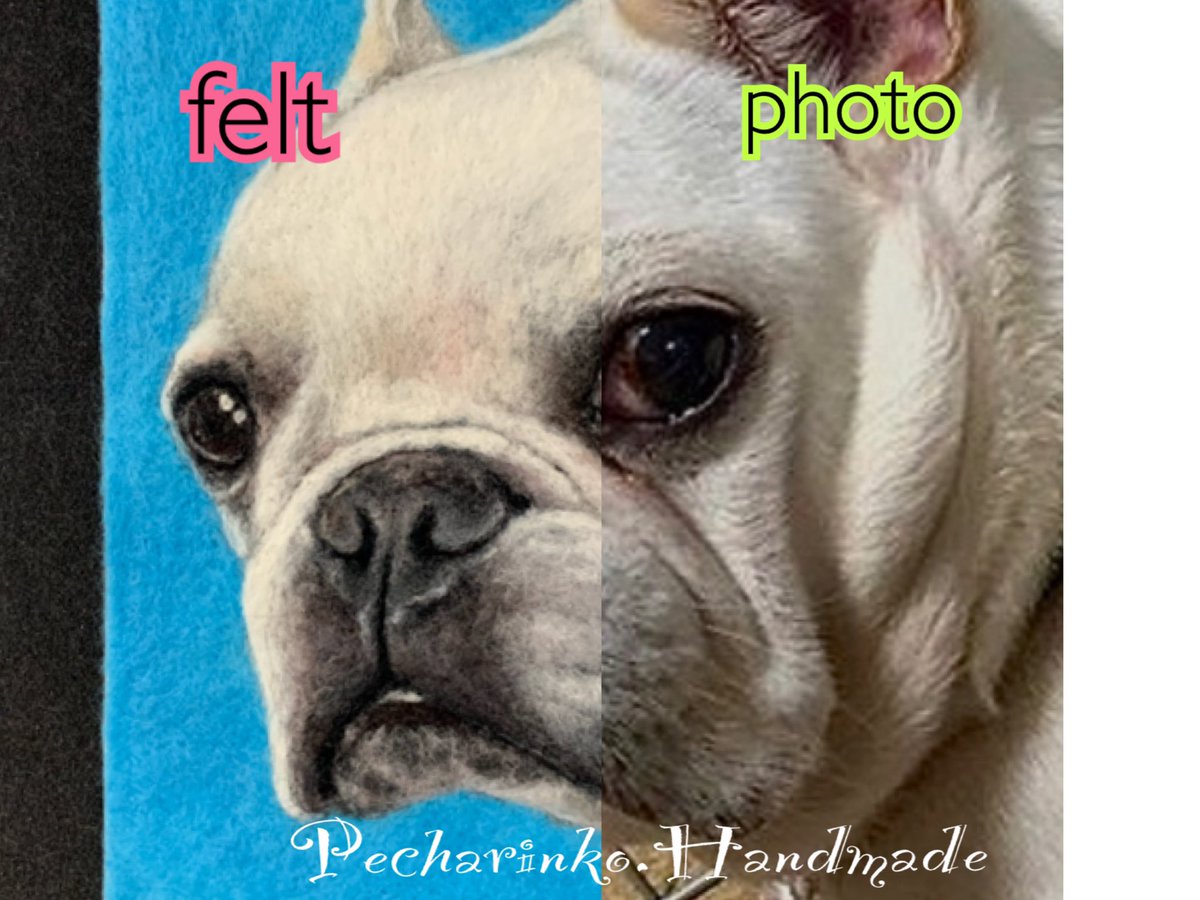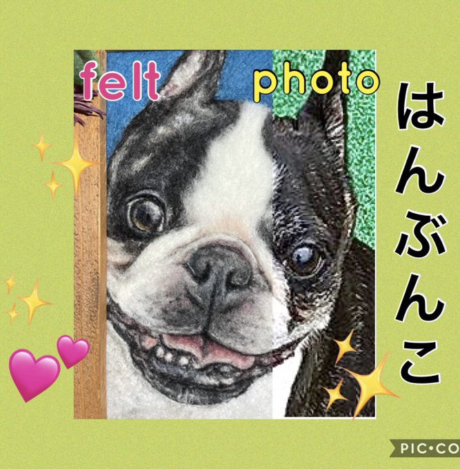 羊毛ペインティング フェルトと写真の半分こ💕 #羊毛ペインティング #羊毛刺繍 #羊毛フェルト #woolpainting #woolart #feltart #needlepainting #平面作品 #handmade #ハンドメイド #dogart #羊毛絵画