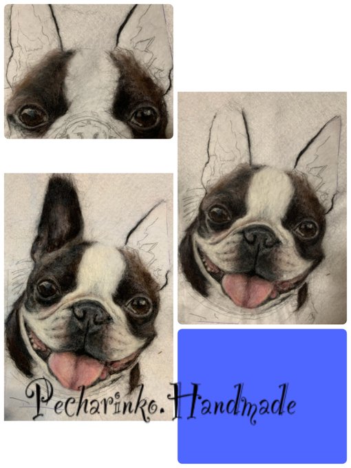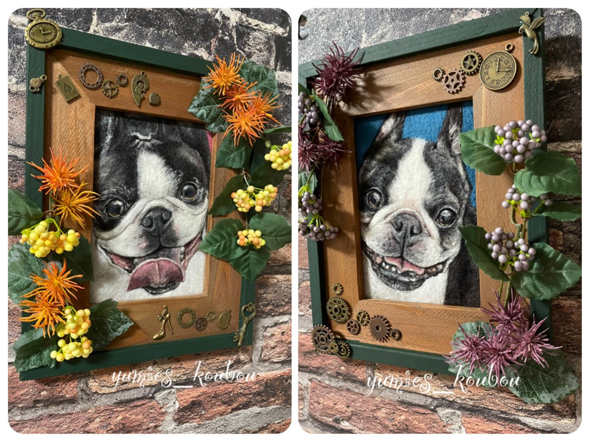 アンディちゃんから素敵な2ショットが届きました💕 #羊毛ペインティング #羊毛刺繍 #羊毛絵画 #羊毛フェルト #woolpainting #needlepainting #woolart #needleart #feltart