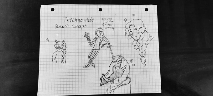 here are somesketches from the Techno fanart i made. it was the first time i drew on paper from like the past 2 years... #TechnoBladeFanart #Blood4TheBloodGod #TechnoFanart @Technothepig @TechnoPigFanArt