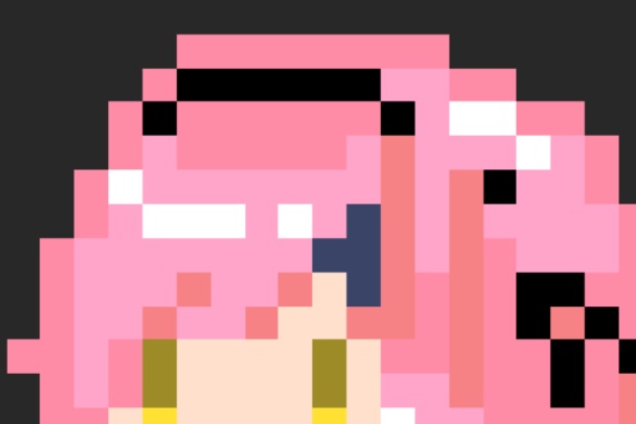 出来上がったけど髪の毛の配色が気に入らなくて修正! 髪の毛が1番難しいねw #ドット絵