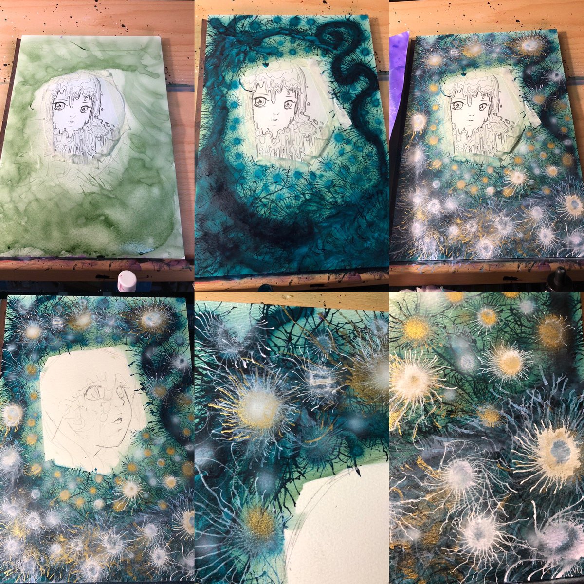 New work in progress with background complete of an OC. #airbrushart #airbrushartist #watercolorillustration #watercolorartist #abstractart #artistsoninstagram #followme #supportartists #inktober2020 #inkdrawing #inksectober #inktober