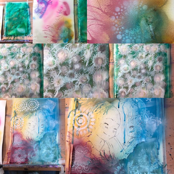 Abstract madness. One is a background for a new Avatar fanart the second is called Dandyline madness. #aiebrush #artistsoninstagram #abstractart #flowersofinstagram #inktober2020 #inktober #inkdrawing #stencilart #airbrushartist #artistsoninstagram