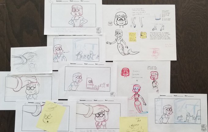 Here's Mindy! The 2 model sheets on the right are copies, but you can see where I wrote "Sandy" above her head as the similarities were explained. #mermay2023