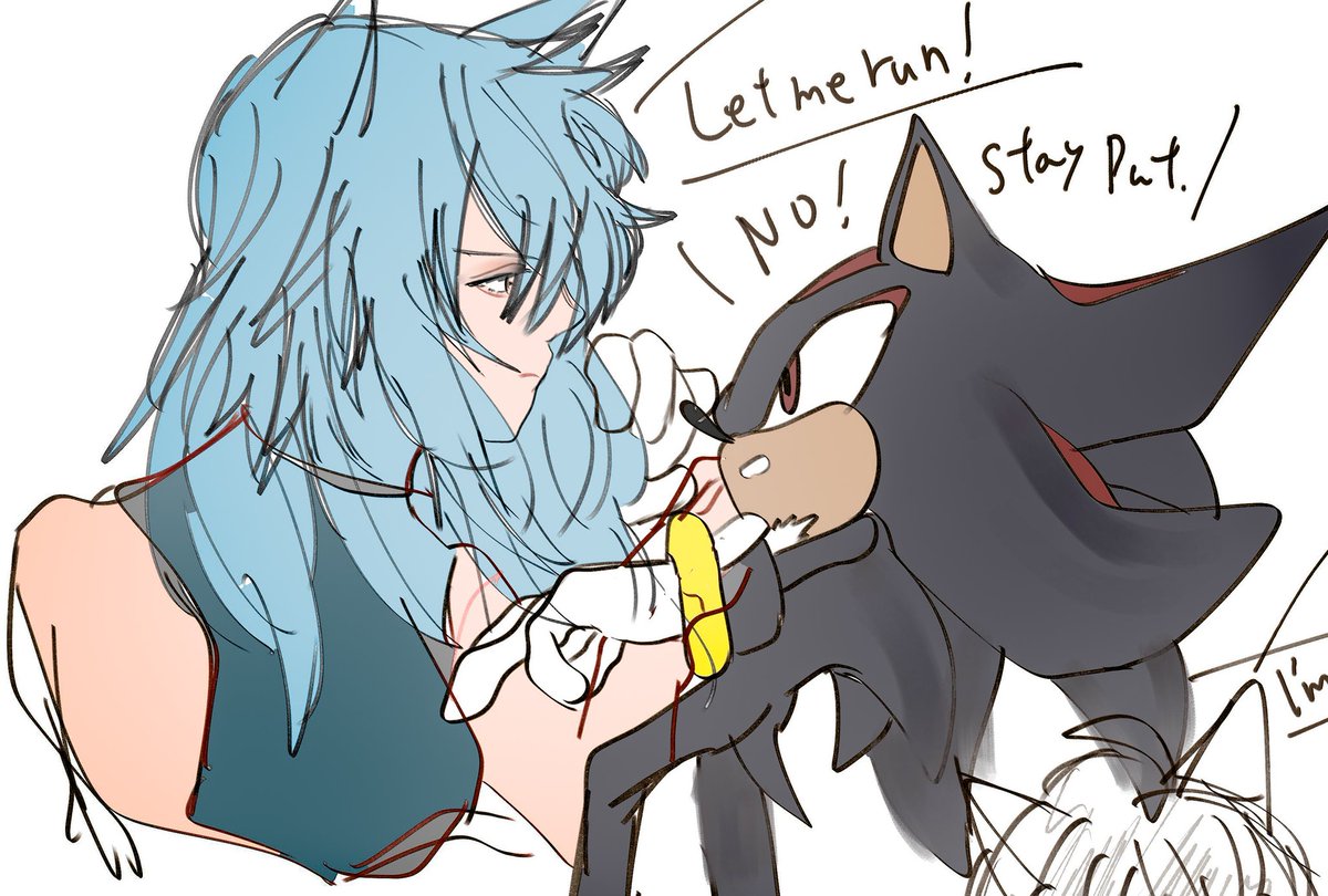 🔵「走らせてくれよシャドウ!」 GUNの失態でソニックが人間になるんだけどシャドウが匿うことになった擬人化落書き楽しくて脳汁🧠💥 I sometimes draw anthropomorphic Sonic. twitter.com/HedgehoG__blue…