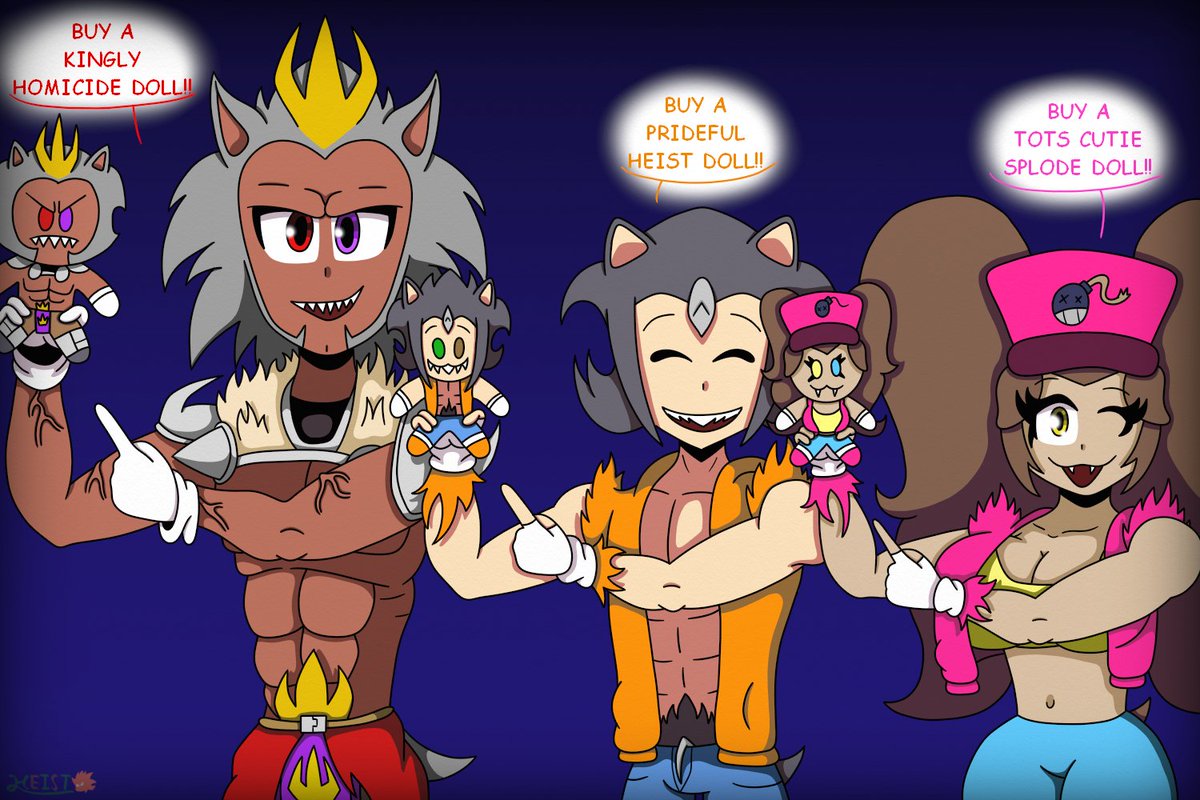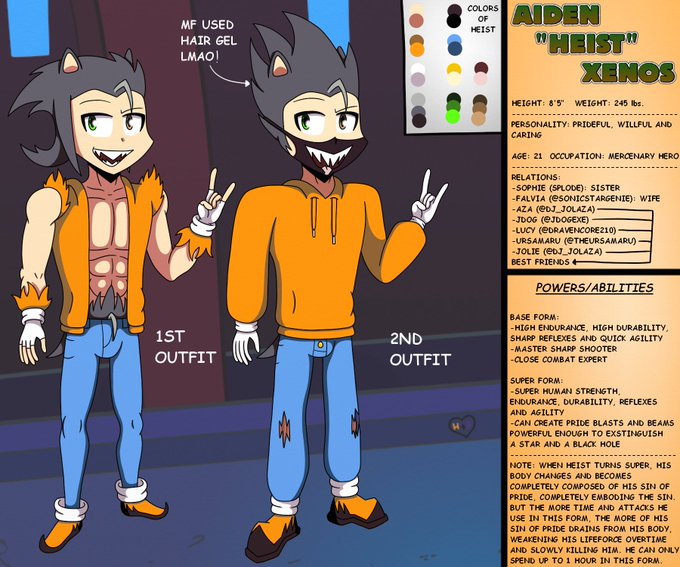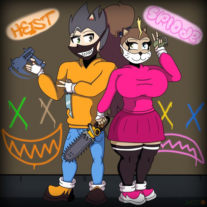 [#OC Art] Heist and Splode, both in their OG fits! The Bro and Sis of Chaos!๐ซ๐งก๐๐ฃ #ArtistOnTwitter #DigitalArt