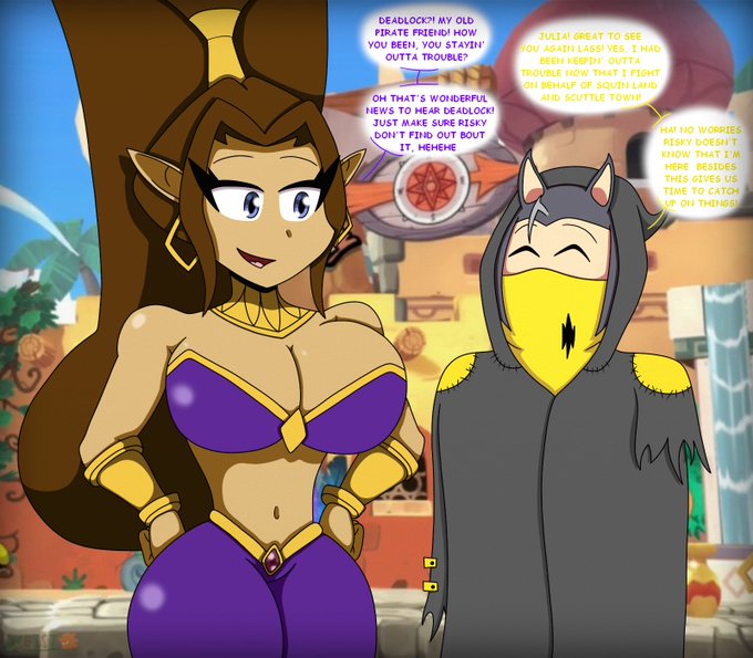 [#OC Art/#ShantaeGang] Deadlock meets an old friend, the Guardian Genie Lady Julia!๐๐งโโ๏ธ๐ (Julia belongs to @LordJulius2) #ArtistOnTwitter #digitalart #Shantae
