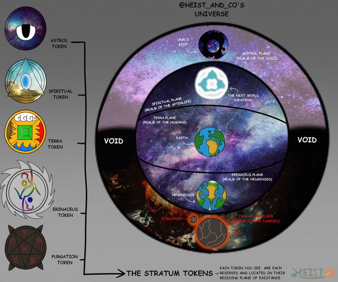 [#OC Lore Art] Here's an overview on Heist's Universe, with the 5 planes of Existences and the Stratum Tokens! #ArtistOnTwitter #DigitalArt