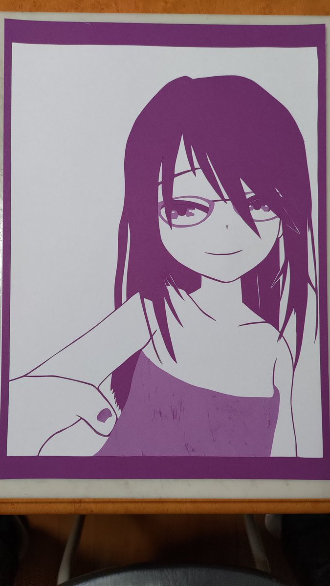 完成 ツグミドリ氏の自撮りを切り絵にしました まさか文字までやるとは思わんかったぜ #VRC切り絵作成部 #切り絵 #VRchat twitter.com/sakuracoumarin…