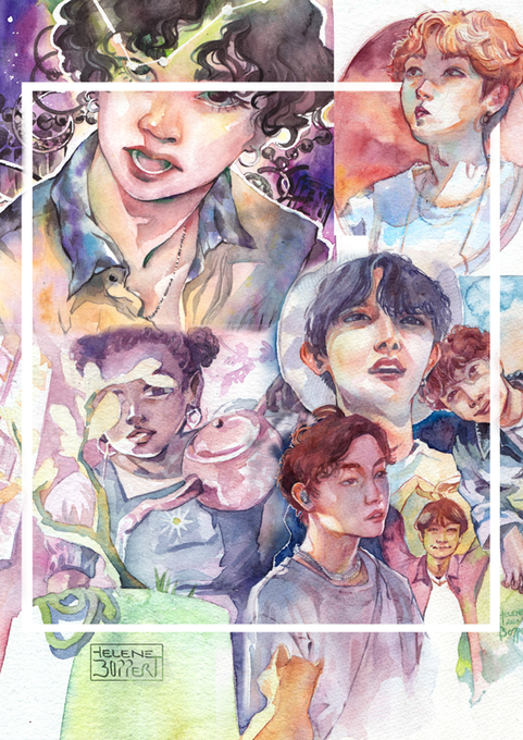 art recap of 2020, the private art/ fanarts from May to August 💚 #witch #watercolor #btsfanart #hobi #suga #taehyung