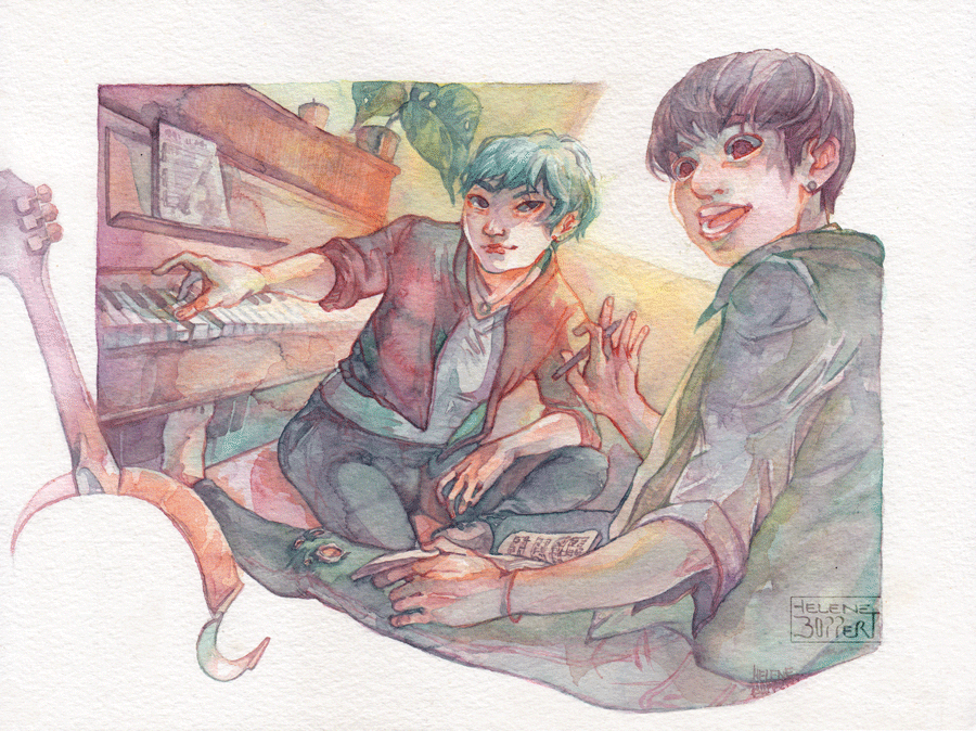 it could be Peter Pan and Tinkerbell or vmin and u wouldn't know the difference #watercolor #btsfanart
