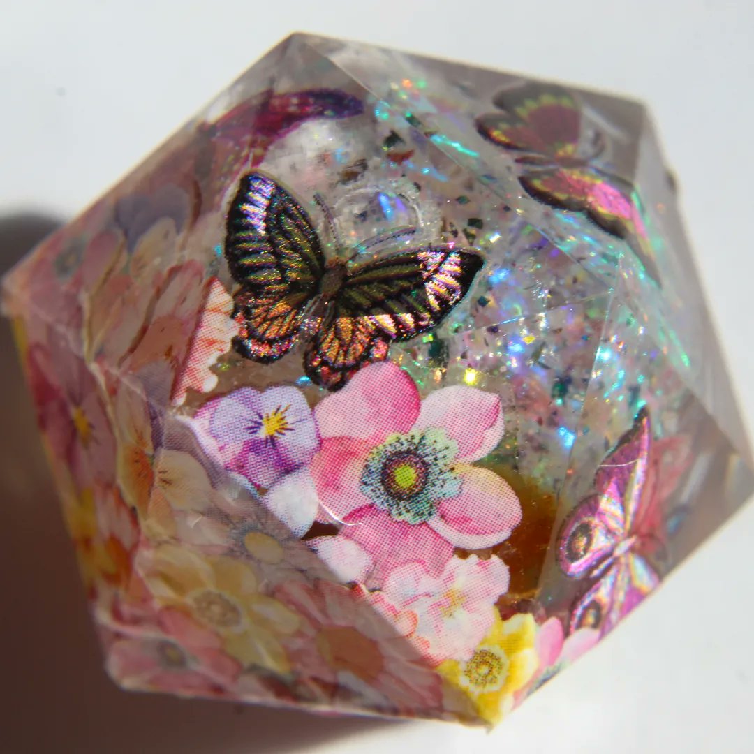 Flower Field 🦋 Yet another liquid core blank, with flowers and butterfly ✨ Soon to be casted in the numbered mold. #dnd5e #fantasy #dice #d20 #pathfinder #art #fantasyart #dndcharacter #characterdesign #dndart #handmadedice #liquidcore