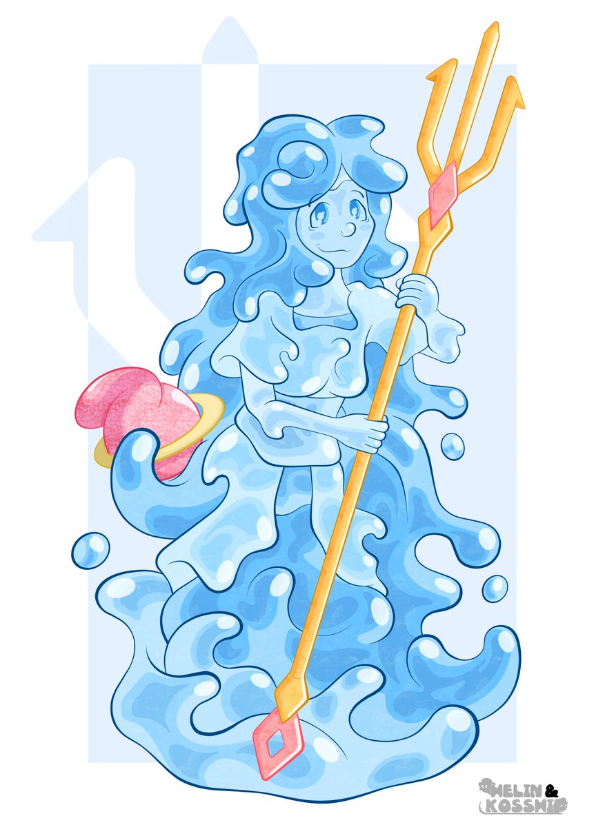 🌊 Helena 🫧 We stood at the ocean. Suddenly, a Siren took shape from the water!~ She is one of those rare souls who decided to love on the surface. Her speed on the water makes her a great messenger on this island continent 💙 #digitalart #artistsontwitter #originalcharacter