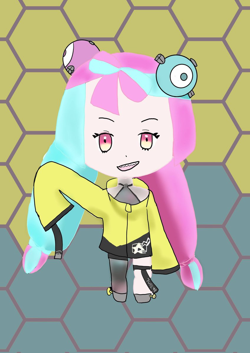 #oc #ペン画 なんかめんこい娘が謎のステージで踊ってる