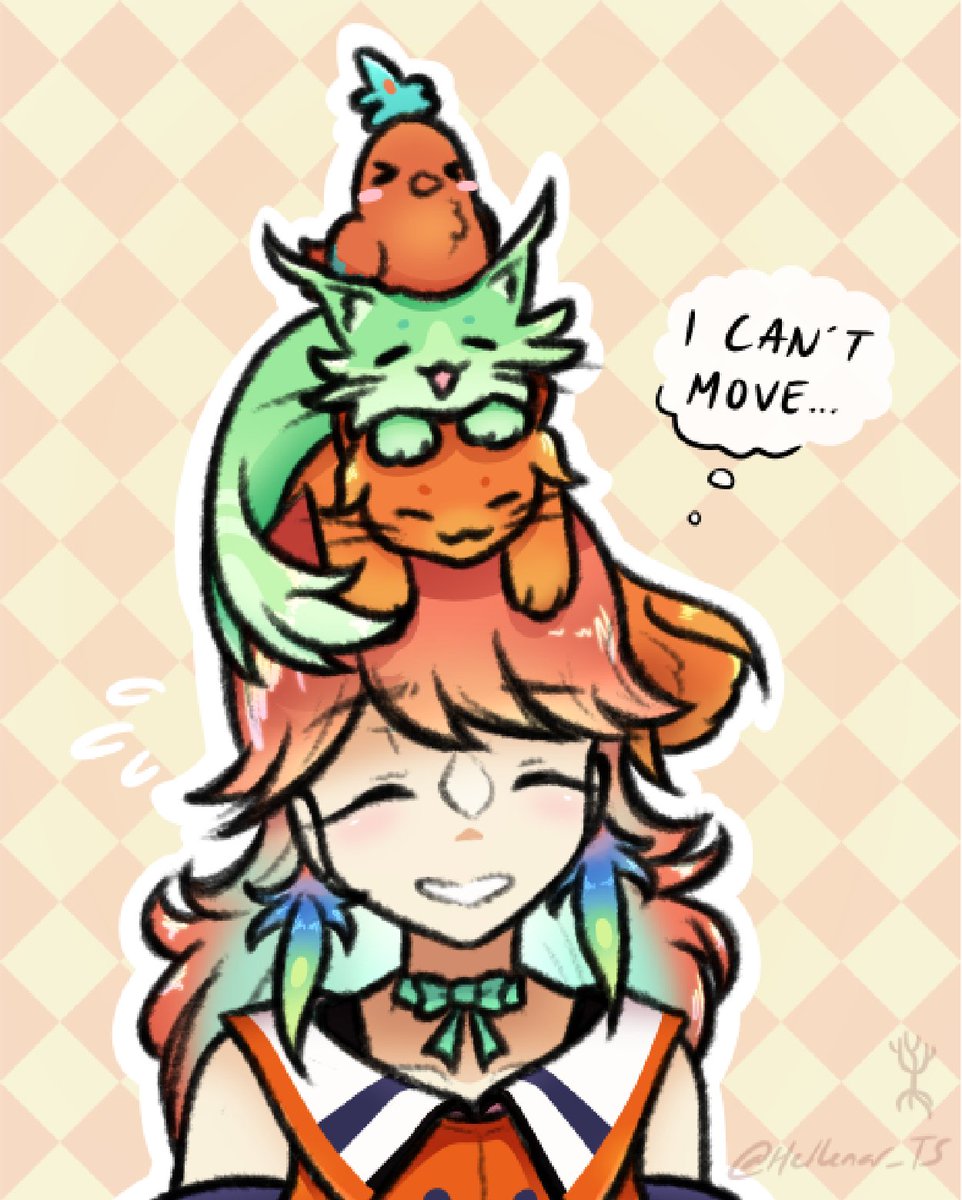 i drew kiara with her cats and with kotori! #ArtsOfAshes here's another holoEN art fight submission, so please remember to check out the pixiv link below too! i had a lot of fun with this one :D it's a bit rough around the edges but that's ok!! (i hope) please gently the birb.