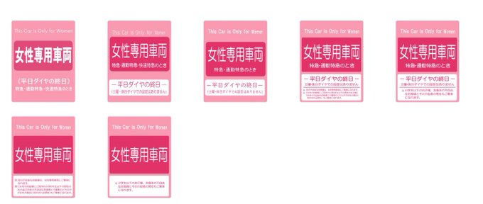 7 36 とりあえず歴代の女性専用車両ステッカー描きました(試験導入時のもの除く) 指摘お願いします... 20/06/24 22:07