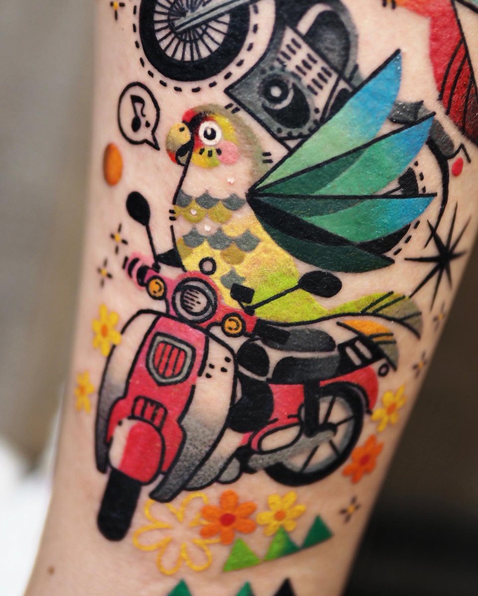 🦜🛵🏍🌼✨ ⠀ 반려 앵무새들과 본인 스쿠터에 드림바이크까지 꽉꽉!
