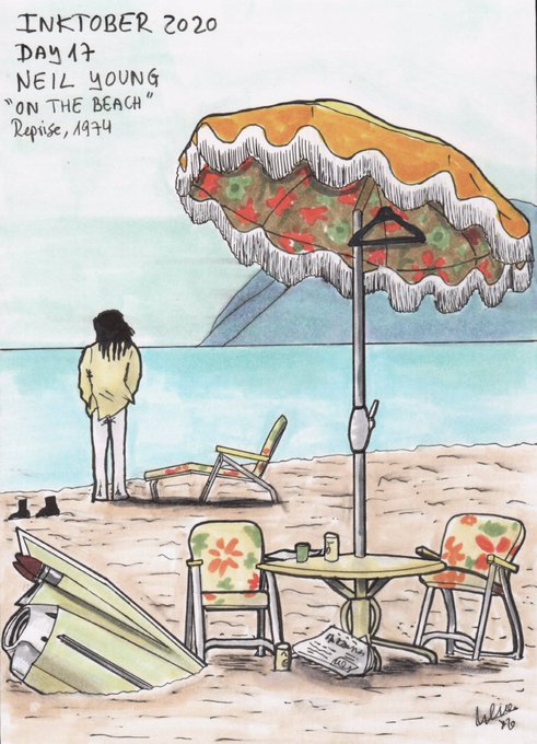 INKTOBER / MUSIKTOBER 2020 DÍA 17 NEIL YOUNG “ON THE BEACH” Reprise, 1974 Me encanta la composición de la portada y el disco es una MARAVILLA. ❤️ #Inktober2020 #Musiktober2020 #NeilYoung #Fanart #challenge