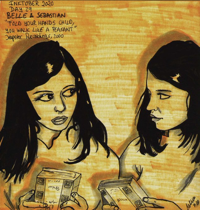 INKTOBER / MUSIKTOBER 2020 DÍA 29 (ya queda menos) BELLE & SEBASTIAN “FOLD YOUR HANDS CHILD, YOU WALK LIKE A PEASANT” Jeepster Recordings, 2000 Les adoro, y Stuart Murdock fue encantador cuando le conocí en 2003. #Inktober2020 #Musiktober2020 #BelleandSebastian