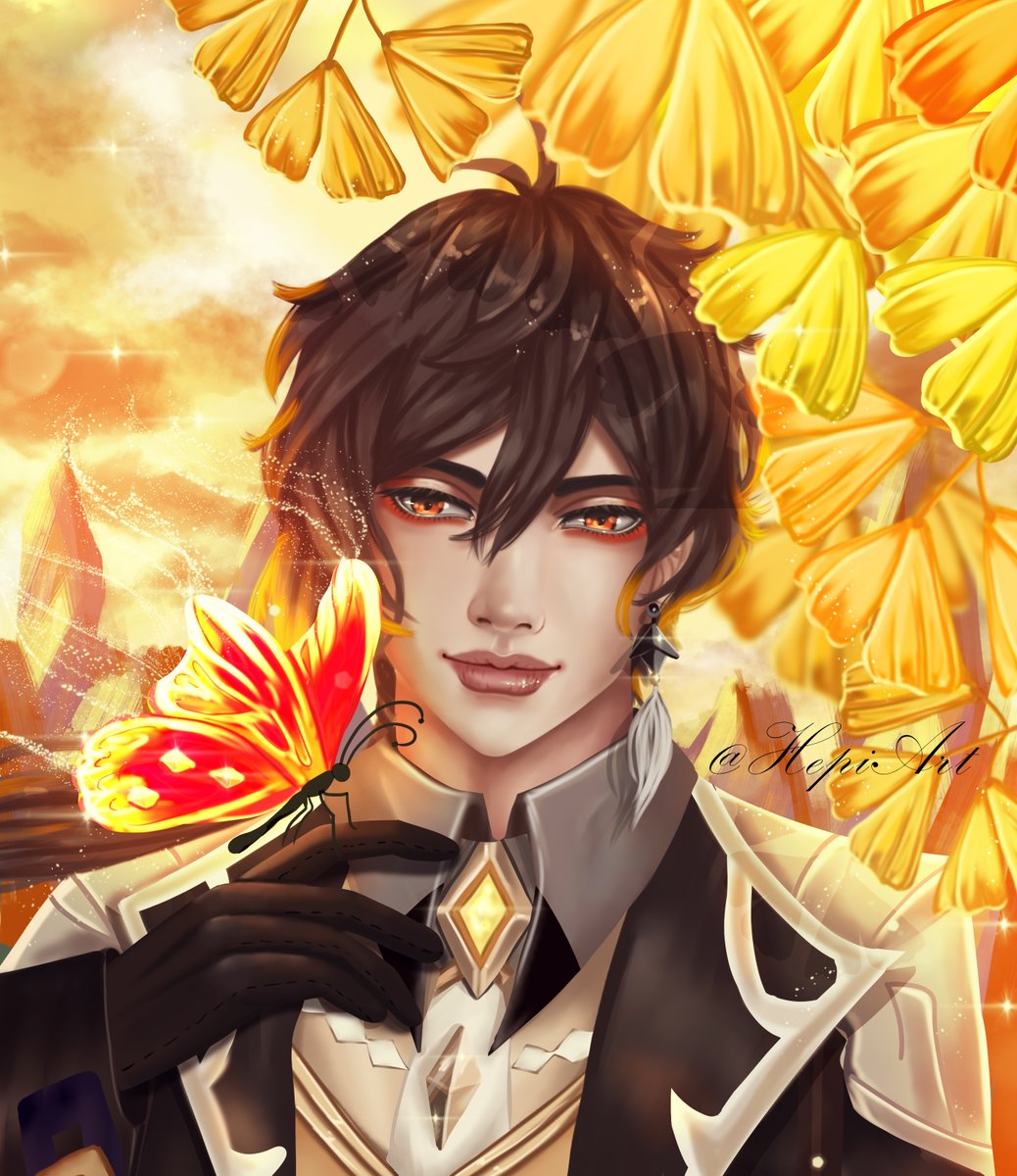Zhongli and the butterfly 💛 #anime #zhonglifanart #zhongligenshinimpact #zhongchi #zhongchi #genshinimpactfanart #genshinimpactedit
