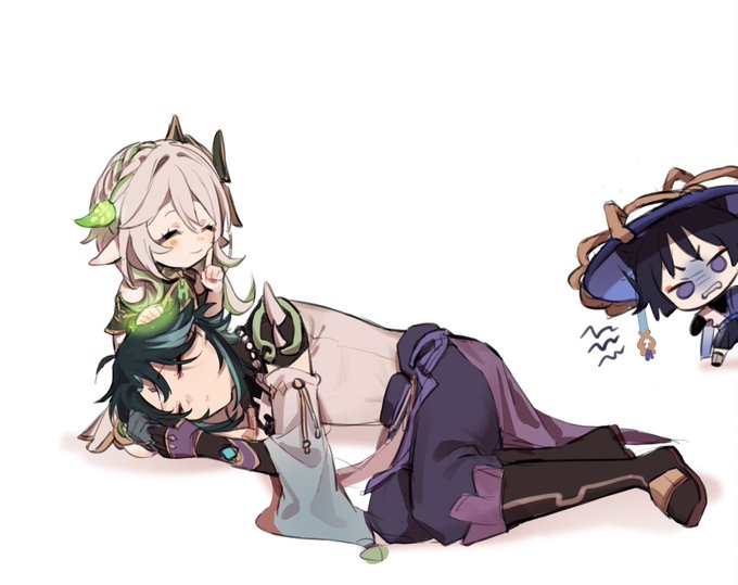 小草在照顾一只晕倒的猫猫 不过自己家的猫猫吃醋了…… #原神 #xiao #ナヒーダ #Genshinlmpact #Nahida