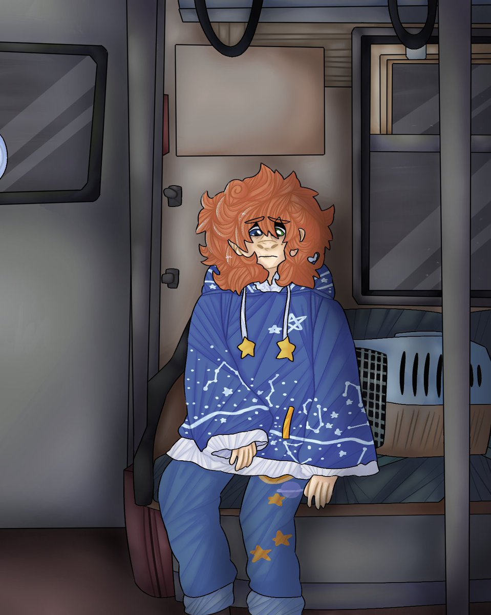 [🎪Forgotten Circus] 💬Commuting before class. [ #art #digitalart #ArtistOnTwitter #oc #ocs #originalcharacter ]