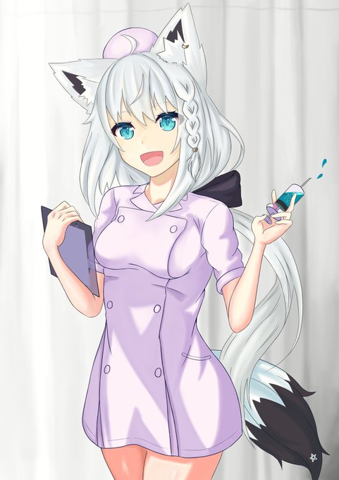 🦊👩⚕️すこん部ぅーっお注射の時間ですよ~♡ お尻だしなさい、とうもろこし成長促進剤だよ♡ #絵フブキ