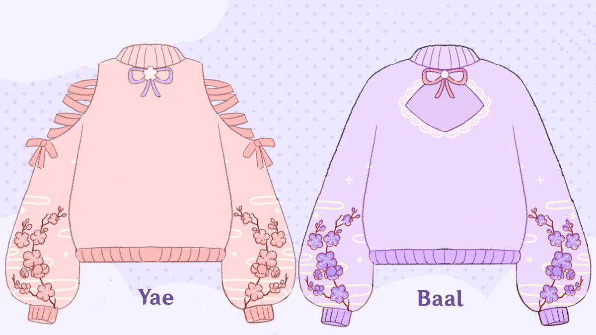 ✨💖 YAE AND BAAL'S MATCHING SWEATERS.. 💜✨ Will be available in this afternoon's poll along with the CARDIGANS of HU TAO, KOKOMI,KAZUHA, KLEE, MONA and maybe SOME SURPRISE! THE KICKSTARTER IS COMING! STAY TUNED for this afternoon! #GenshinImpact #Baal #RaidenShogun